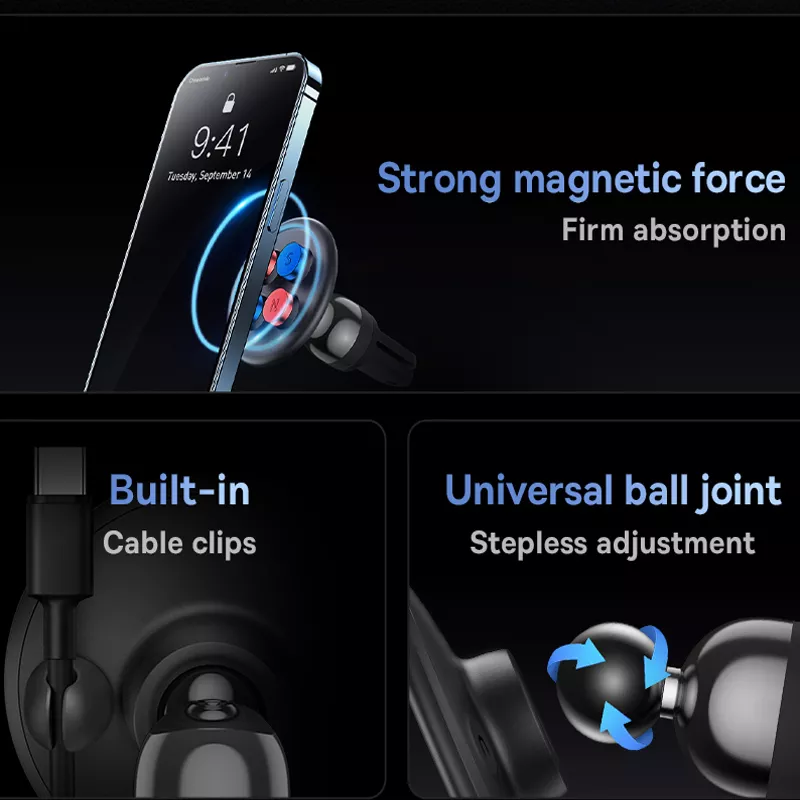 The fact that this holder comes with built-in magnetic cable clips just shows how thoughtful the design is. No more tangled cords — everything stays neat and within reach all the time!