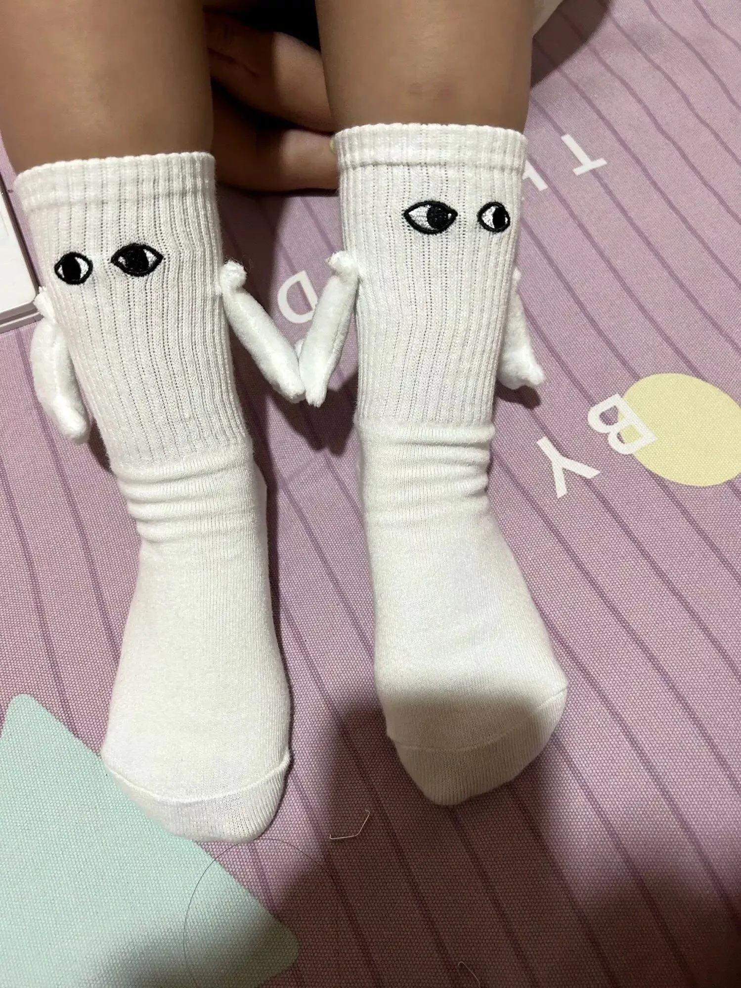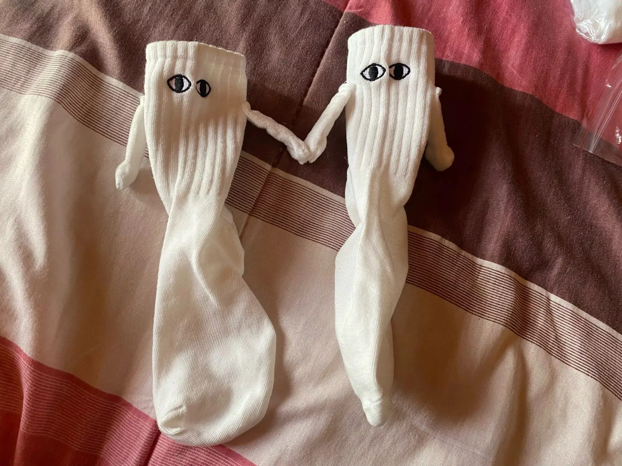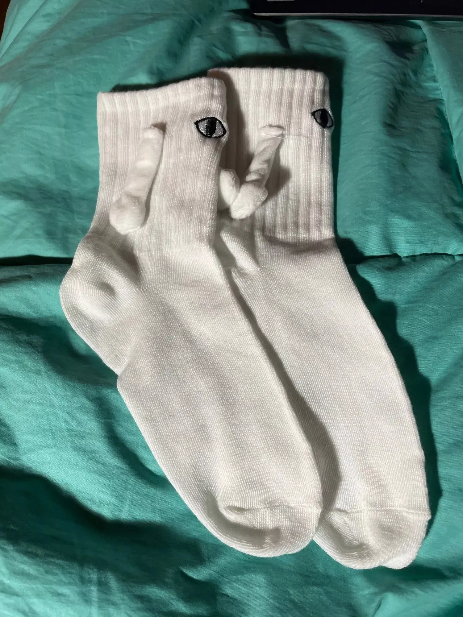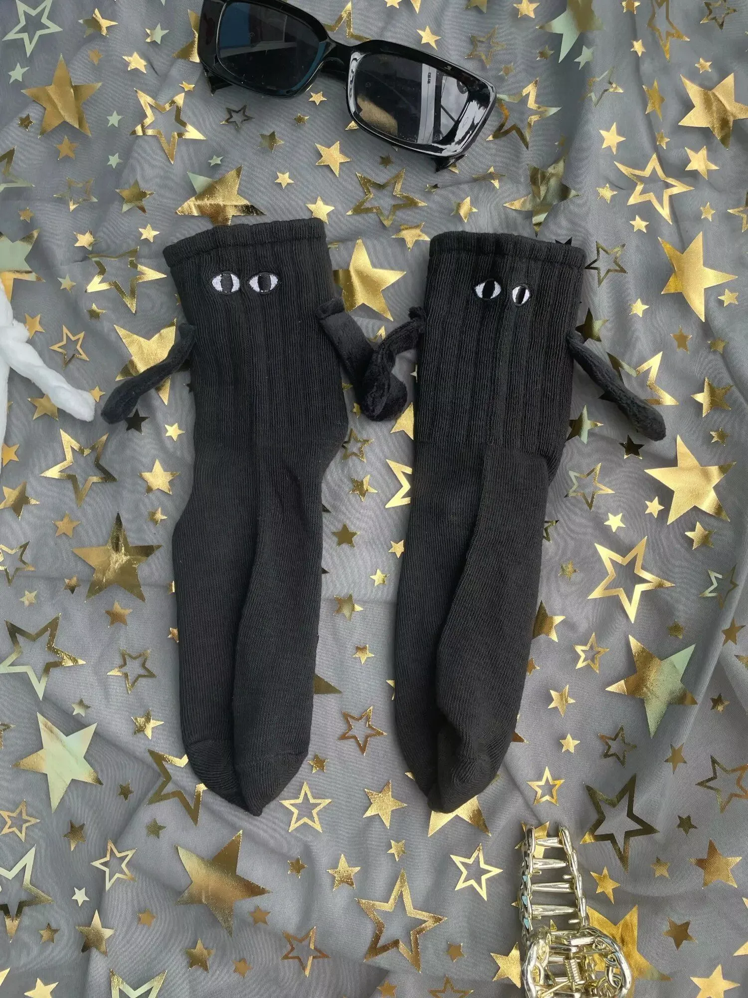 these couple socks are simply amazing. the cartoon eye design is cute and fun, and the magnetic attraction feature is a delightful touch. the socks are very soft and comfortable, making them perfect for all-day wear. the quality is outstanding, with durable materials and bright, long-lasting colors. matching socks with my partner has never been more enjoyable. the magnetic feature adds a playful twist, making us feel even closer. we’ve received numerous compliments on these socks, and they always bring a smile to our faces. these socks are a great way to add some fun and connection to our everyday routine. highly recommend!