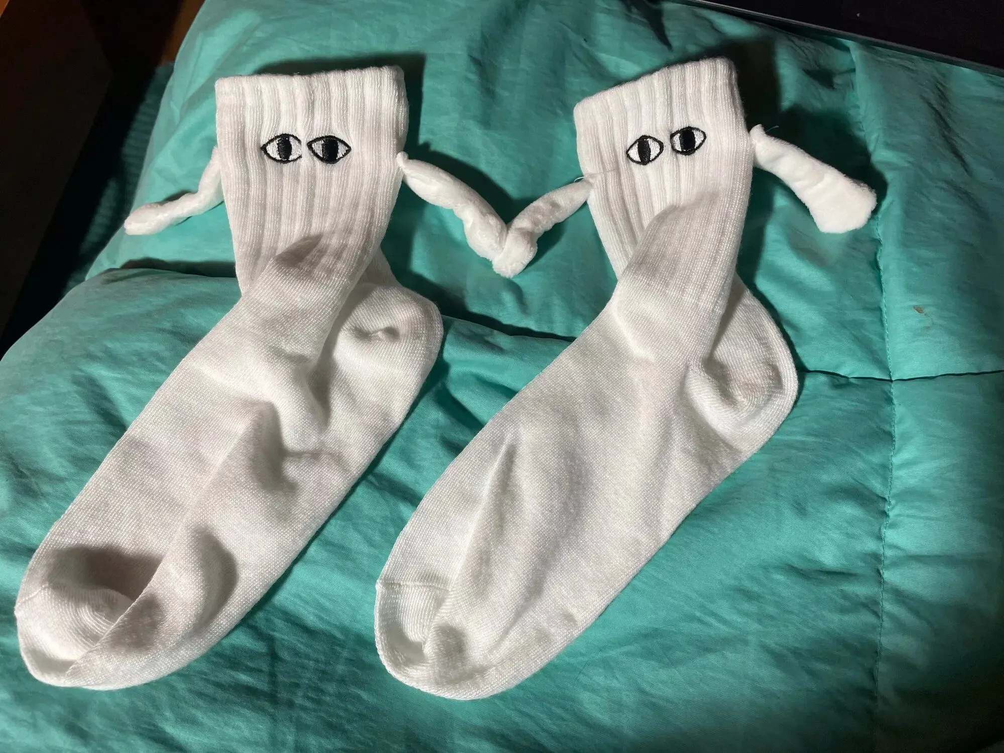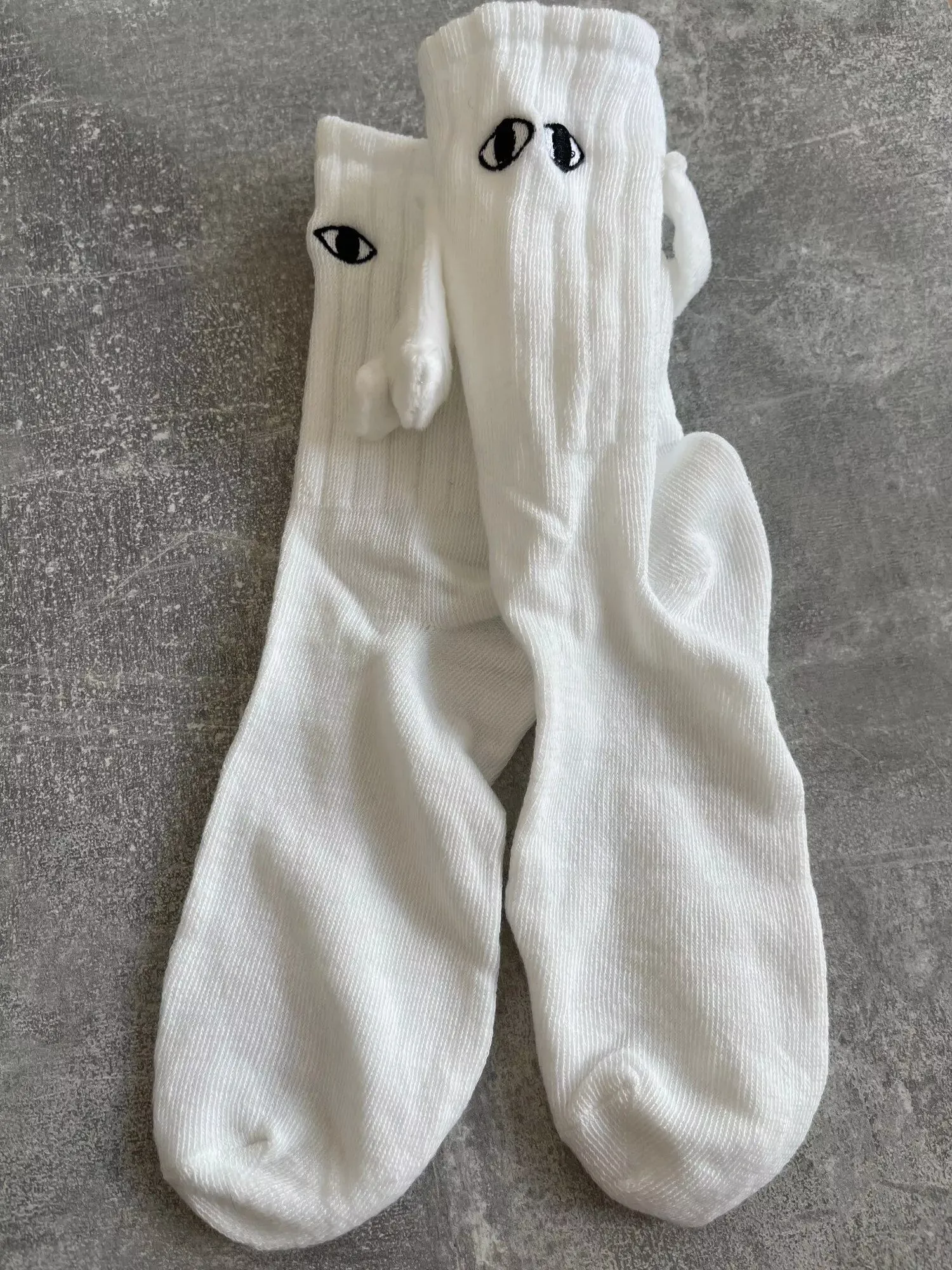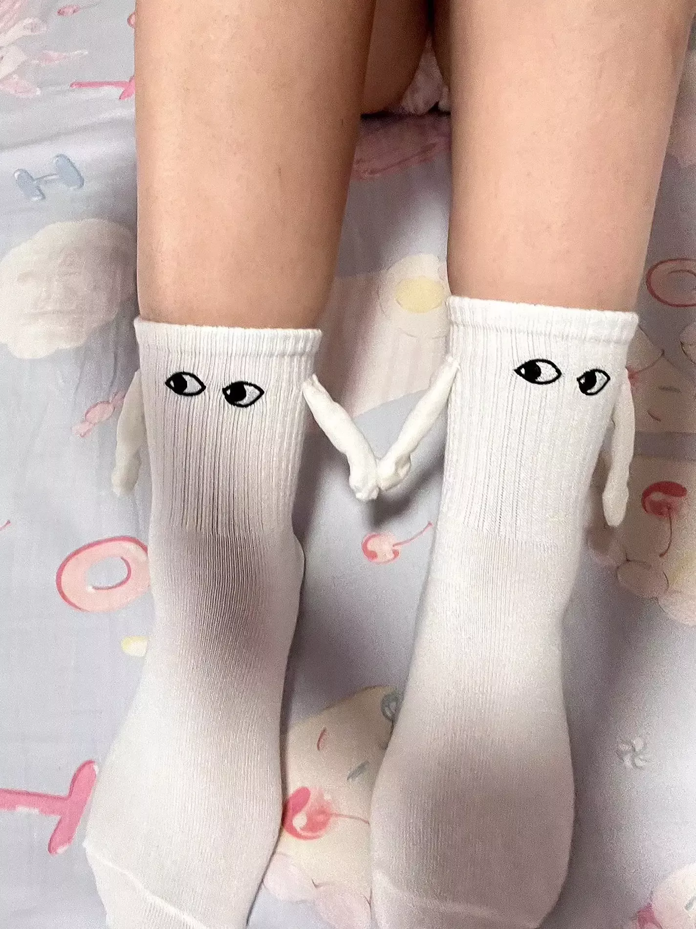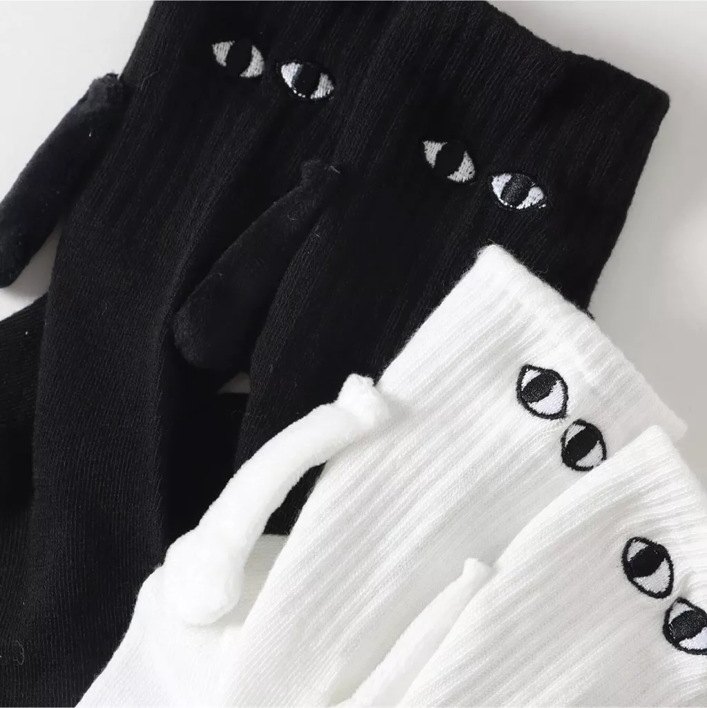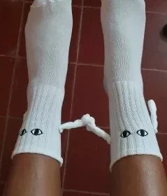 these couple socks are simply amazing. the cartoon eye design is cute and fun, and the magnetic attraction feature is a delightful touch. the socks are very soft and comfortable, making them perfect for all-day wear. the quality is outstanding, with durable materials and bright, long-lasting colors. matching socks with my partner has never been more enjoyable. the magnetic feature adds a playful twist, making us feel even closer. we’ve received numerous compliments on these socks, and they always bring a smile to our faces. these socks are a great way to add some fun and connection to our everyday routine. highly recommend!