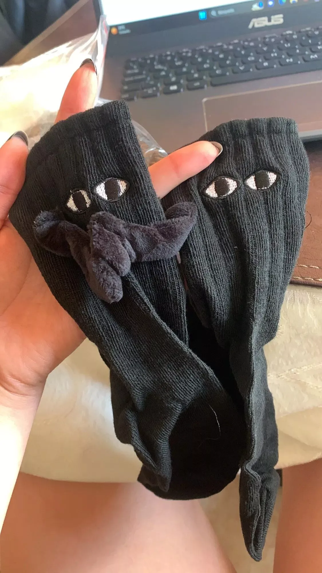 these couple socks are amazing. the cartoon eye design is so cute, and the magnetic attraction feature is a delightful touch. the socks are very soft and comfortable, with a perfect fit. they are also very well-made, with high-quality materials and bright, long-lasting colors. i love matching them with my partner; it’s a fun way to show our connection. highly recommend these socks for anyone looking for a playful and cozy addition to their wardrobe.