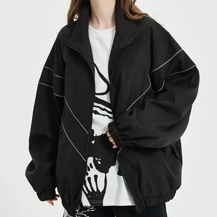 Our jacket is designed with meticulous attention to detail. It features a stylish stand collar and a convenient zipper closure, ensuring a blend of comfort and fashion. The reflective stripes not only add a unique touch but also enhance visibility in low-light conditions, making it an ideal choice for evening outings. The polyester lining ensures durability and comfort, while the standard thickness provides the right balance of warmth without being overly bulky.