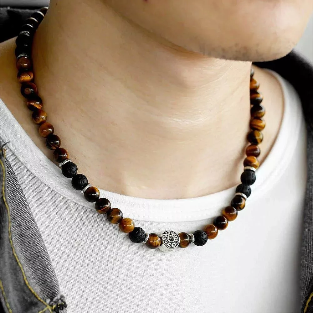 Step into the world of fashion with our Men’s Tiger Eye & Lava Stone Beaded Choker. This necklace is more than just a piece of jewelry; it’s a statement of style and sophistication. Perfect for any occasion, from casual outings to formal events, this choker is designed to impress. Whether you’re attending a party or looking for the ideal accessory for your wedding day, this necklace is your go-to choice.