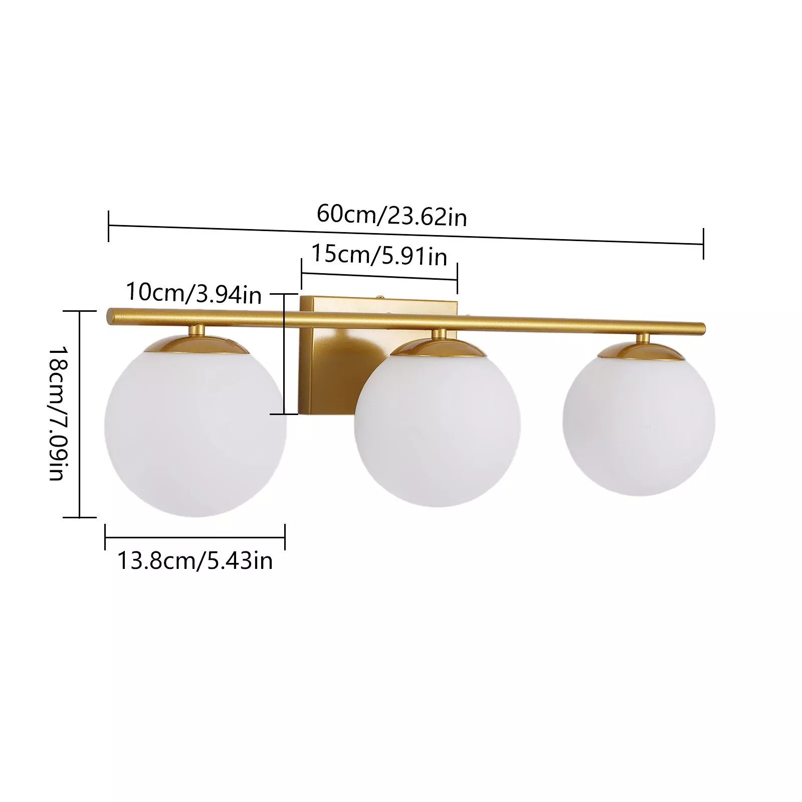 Our Bathroom Vanity Light Fixtures not only provide functional illumination but also elevate the aesthetic appeal of your space. The golden metal frame adds a touch of luxury, while the milk white glass globes emit a soft and inviting glow. Whether you’re getting ready in the morning or winding down in the evening, this fixture creates the perfect ambiance for any occasion.