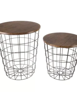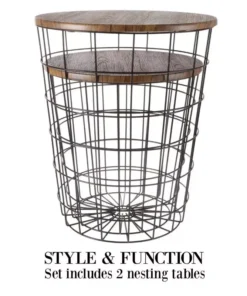 Elevate your home or office decor while adding a versatile storage solution with our Modern Nesting End Tables with Storage. This set of two tables embodies the perfect blend of functionality and style, designed to complement any living room, bedroom, office, or small space. Whether you’re looking to enhance a rustic, modern farmhouse, vintage, or industrial setting, these tables offer a fresh take on openwork design with their square grid pattern metal baskets and charming wood-grain finish on the veneer lids.