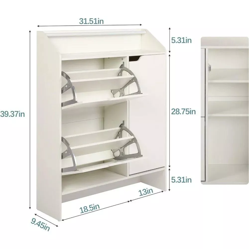 The thoughtful design extends to the distance between the cabinet bottom and the ground, preventing moisture and increasing storage space. Its slim profile allows placement in narrow spaces, keeping your shoes dust-free. The pure white color adds a vibrant touch to your room, enhancing its overall aesthetic.
