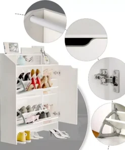 Still troubled by the chaos of shoes scattered across your entrance? Our modern shoe storage cabinet is the stylish solution you’ve been searching for. Say goodbye to the hassle and welcome a sense of sophistication to your entryway. This white shoe cabinet not only provides ample storage space but also adds a touch of elegance to your home.