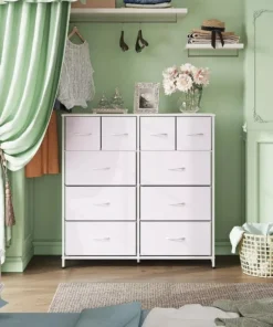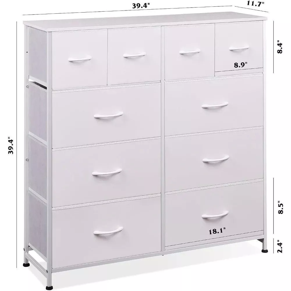 Introducing a sleek, modern storage solution that brings both functionality and style to your home or office. Our versatile dresser offers ample storage with 10 deep drawers, perfect for organizing clothing, accessories, office supplies, and more. The minimalist design, polished finish, and white color make it an ideal match for any decor, enhancing the look of your bedroom, living room, nursery, or dorm. Experience the blend of style and practicality with this exquisite storage unit.