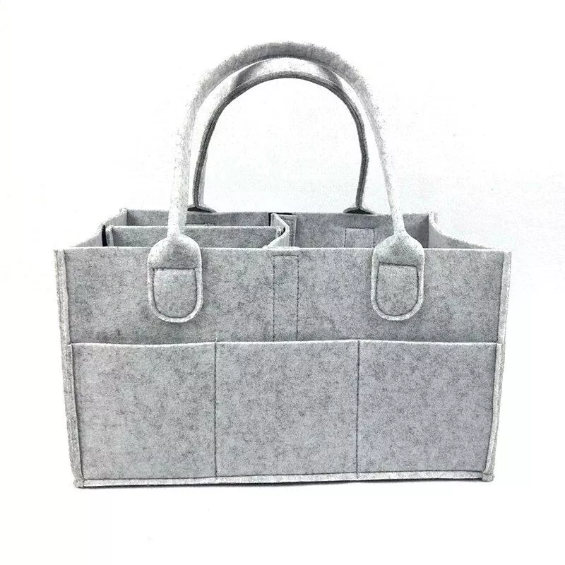 This isn’t just any ordinary diaper bag. It’s designed with the modern parent in mind. With removable dividers, you can customize the storage to fit diapers, wipes, lotions, toys, and more. Its soft felt material ensures durability, while its neutral colors make it a stylish addition to any room or car.