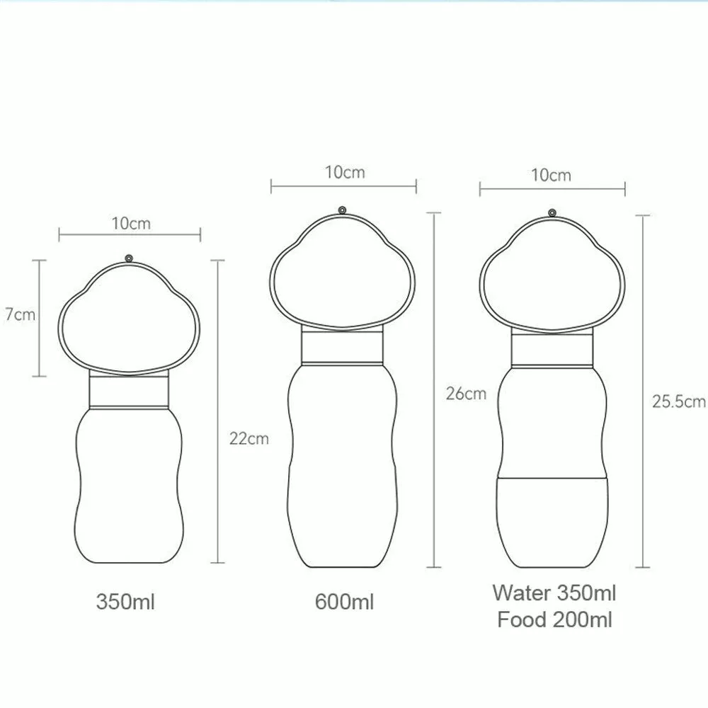 Our pet water bottle is crafted from high-quality, safe, and durable plastic, ensuring longevity and reliability. It comes in three eye-catching colors: Purple, White, and Yellow, making it a stylish addition to your pet supplies. Available in various sizes – 350ml, 600ml, and a dual 350ml water + 200ml food option – it’s suitable for dogs and cats of all sizes, from Chihuahuas to German Shepherds.