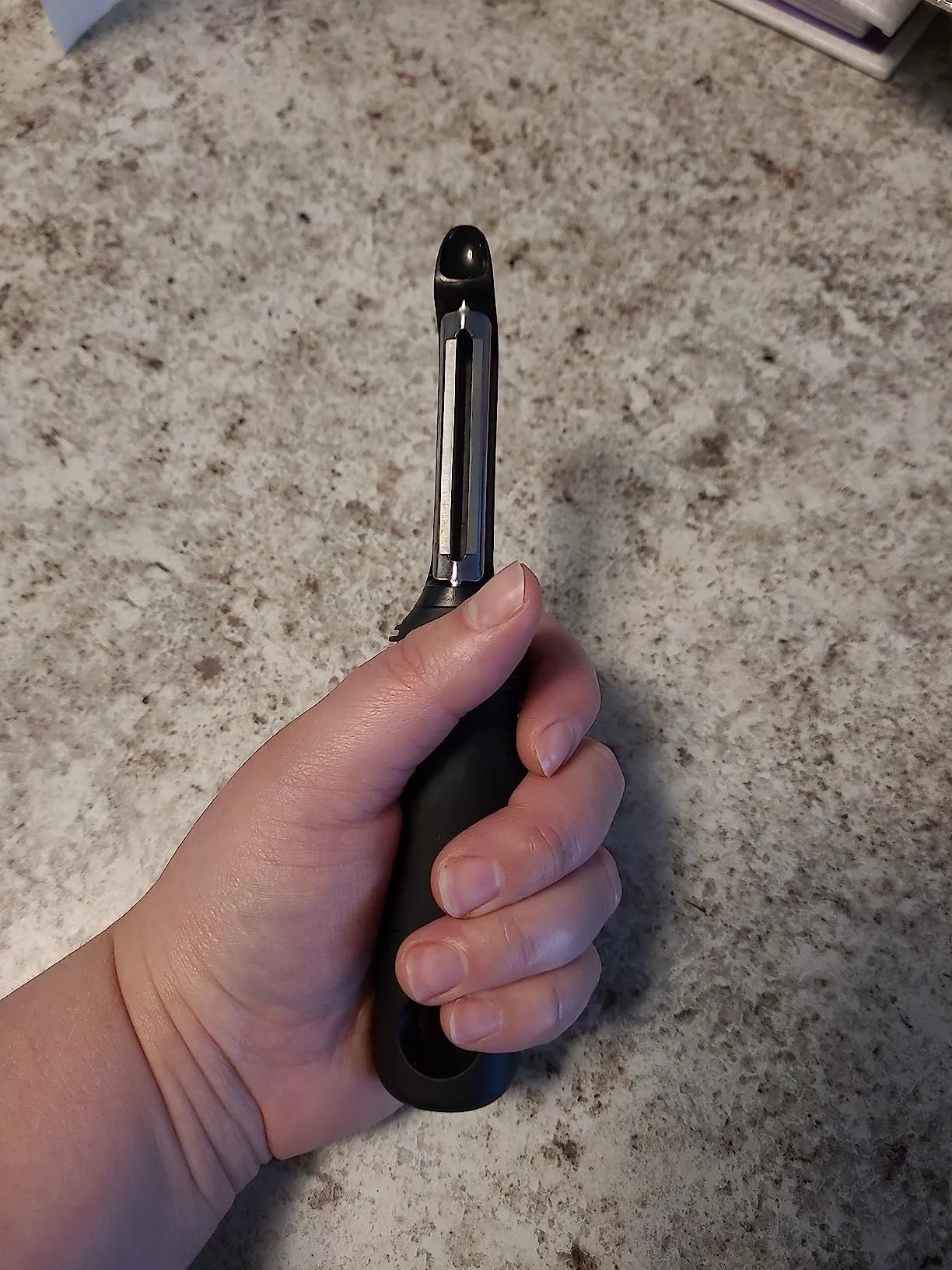 I didn’t realize how dull my old peeler was until I used this new one. It’s comfortable to hold and easy to use.