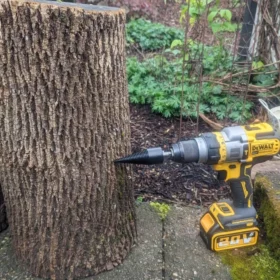 Works fine for 30mm trees with a general charging drill, but thicker trees require a more powerful drill.