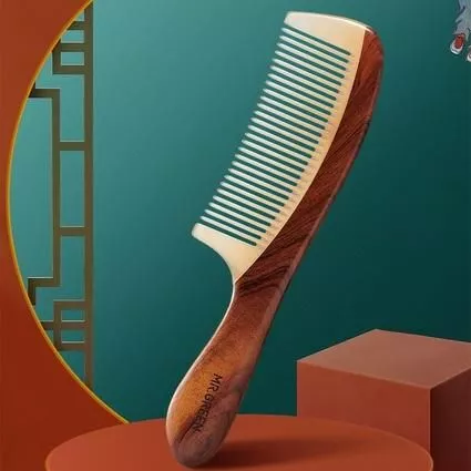 Embrace the perfect blend of nature and craftsmanship with our Fine Tooth Anti-Static Hair Comb. Meticulously crafted, this comb is not just a tool but a gateway to healthier, smoother hair. Its unique splicing of natural wood and ox horn, a revered Chinese traditional craft, elevates your daily grooming ritual into an experience of luxury and effectiveness.
