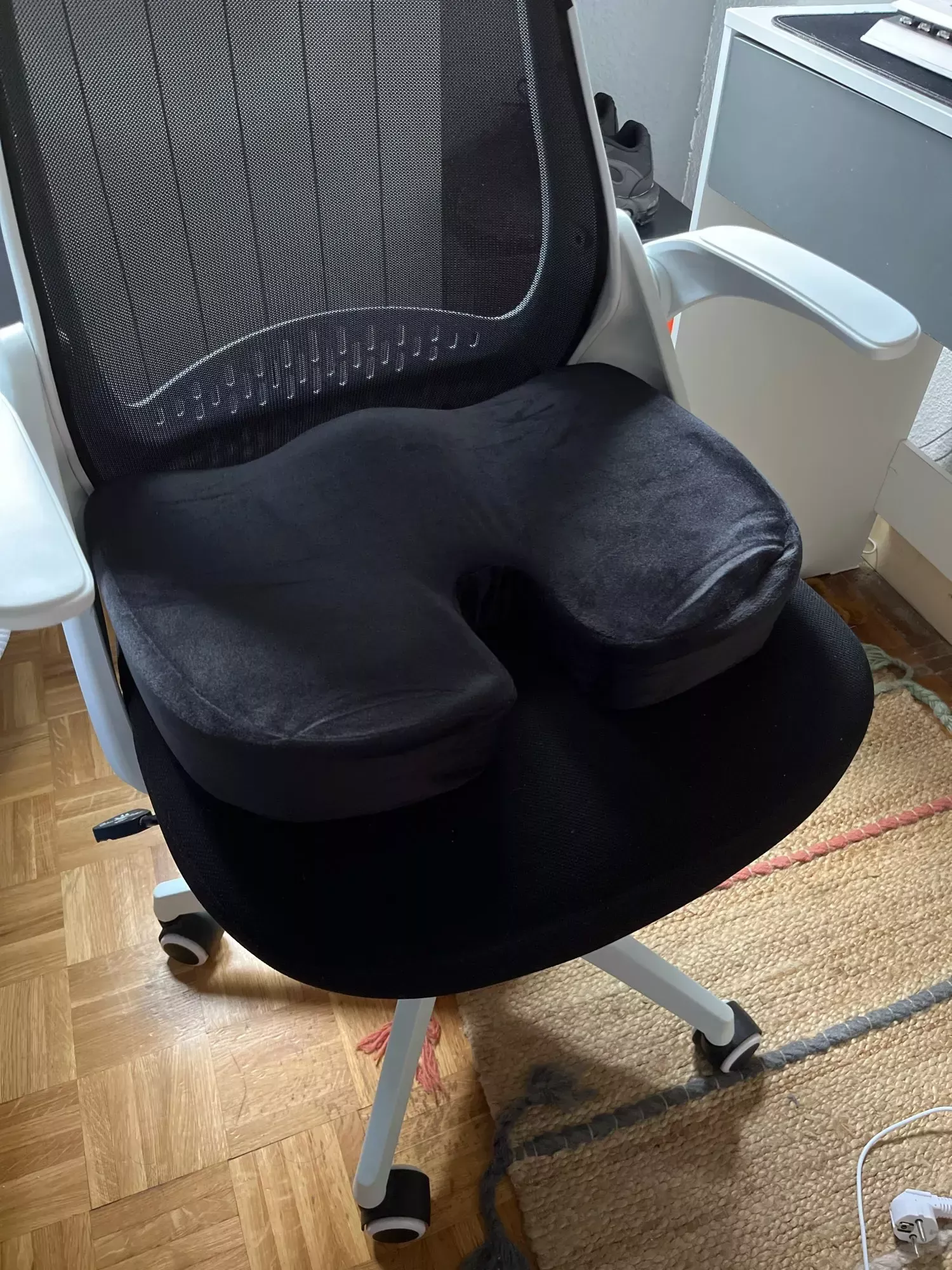 My chair used to make my butt hurt, but this cushion solved the problem.