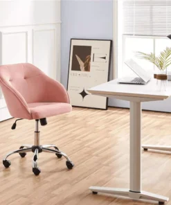 Introducing the ultimate addition to your home office: our Modern Velvet Adjustable Swivel Office Chair. Crafted with luxurious velvet, this chair is not just a seat; it’s a statement of style and comfort. Designed to cater to your comfort for long hours, whether you’re diving into work or engaging in leisurely chats, this chair promises an experience of unparalleled comfort and elegance.
