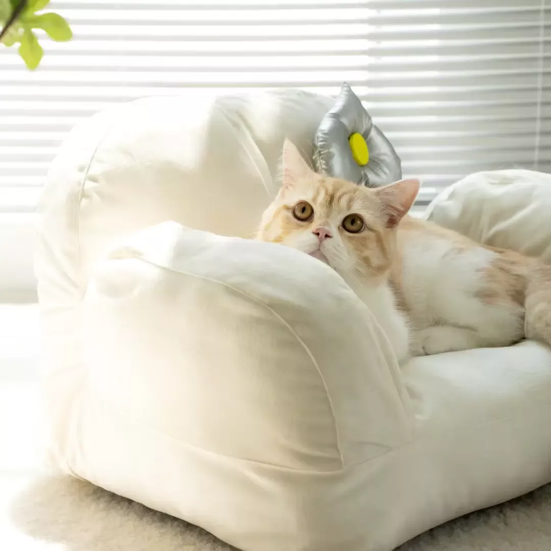 Our Floating Cloud Pet Sofa Bed stands out for its unique design and superior quality. The bed resembles a fluffy cloud, providing a cozy and inviting space for your pet. Crafted from 100% soft cotton, it’s gentle on your pet’s skin, ensuring they can lounge in comfort. Additionally, the bed’s excellent heat retention and breathability make it ideal for all seasons, keeping your pet warm in winter and cool in summer.