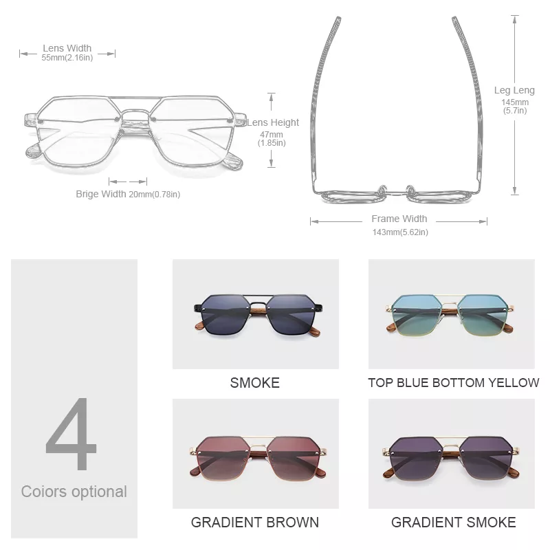 Our Polarized Wood Frame Sunglasses combine premium materials and advanced optical technology to deliver the ultimate in style and performance. The frames are crafted from stainless steel with wood accents, providing a lightweight yet durable design. The polarized lenses reduce glare and enhance clarity, ensuring a comfortable viewing experience even in bright conditions.