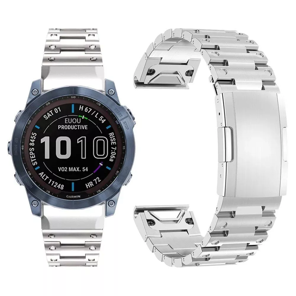 Our watch band is not just an accessory; it’s a statement. The stainless steel construction ensures longevity, while the sophisticated design elevates the look of your Garmin device. It’s ideal for those who demand both functionality and style. Whether you’re at a formal event or on a rugged adventure, this watch band stands out for its versatility and elegance.