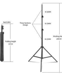 - Adjustable Tripod Stand: Height ranges from 70-200CM, supporting up to 2KG.