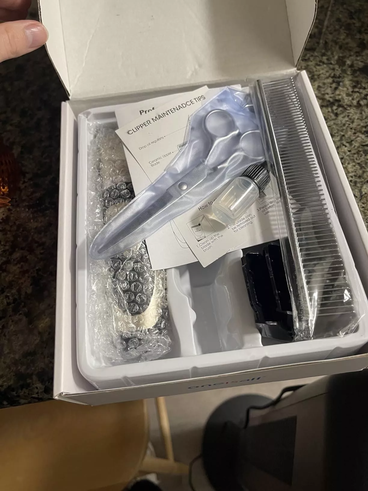 Deciding to groom my Pomeranian at home was prompted by the escalating costs of professional grooming. Opting for this kit seemed like a wise choice, and after using it to groom both my Pomeranian and schnauzer, I can confidently declare it as fantastic and remarkably user-friendly. The scissors, in particular, exhibit excellent performance. However, a minor inconvenience arises when grooming my Pomeranian—the cut hair tends to get entangled in the finger holes. While it’s a simple issue to resolve by removing the hair, it appears to be more pronounced due to the length of her fur compared to my schnauzer. Despite this minor drawback, the overall quality of the set is commendable, and I wholeheartedly recommend it. I’ve given it a rating of 4 out of 5, mainly considering the slight inconvenience with hair entanglement.