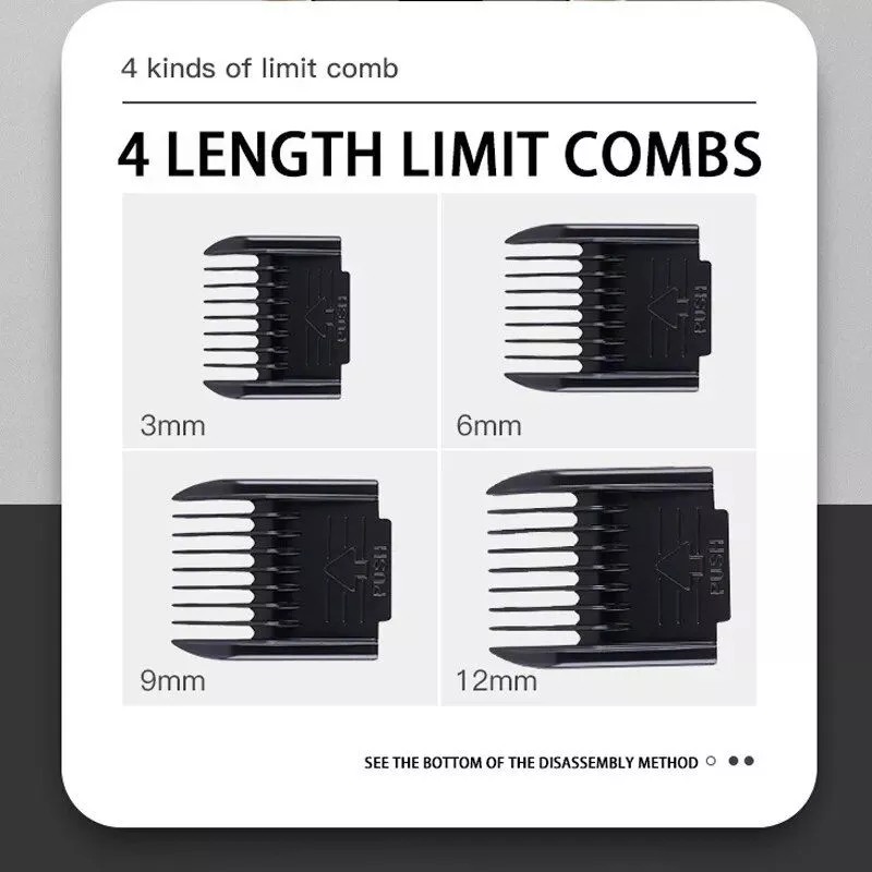 - Adjustable clipping comb for varying hair lengths.