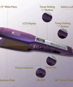Our Professional Titanium Hair Straightener stands out with its blend of luxury, versatility, and cutting-edge technology. Whether you have thick, curly, or wavy hair, this straightener adapts to your needs, delivering smooth, shiny results. The large 1.75-inch nano-titanium plates cater to more hair in less time, making your styling routine efficient and enjoyable.