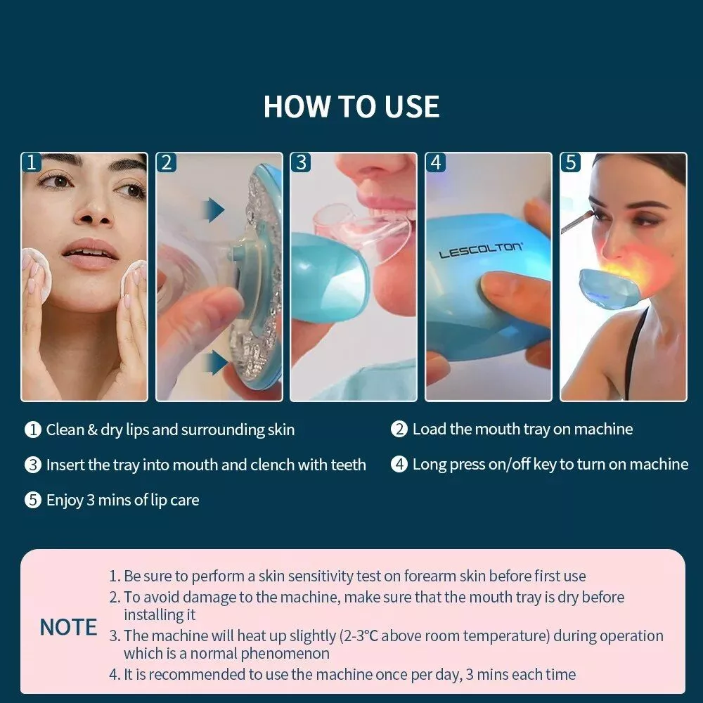 The best time to use this device is after cleaning and drying your lips. Simply follow the user-friendly operation guide provided to enjoy the soothing and rejuvenating treatment. Remember, consistency is key. With daily 3-minute sessions, your lips will thank you!