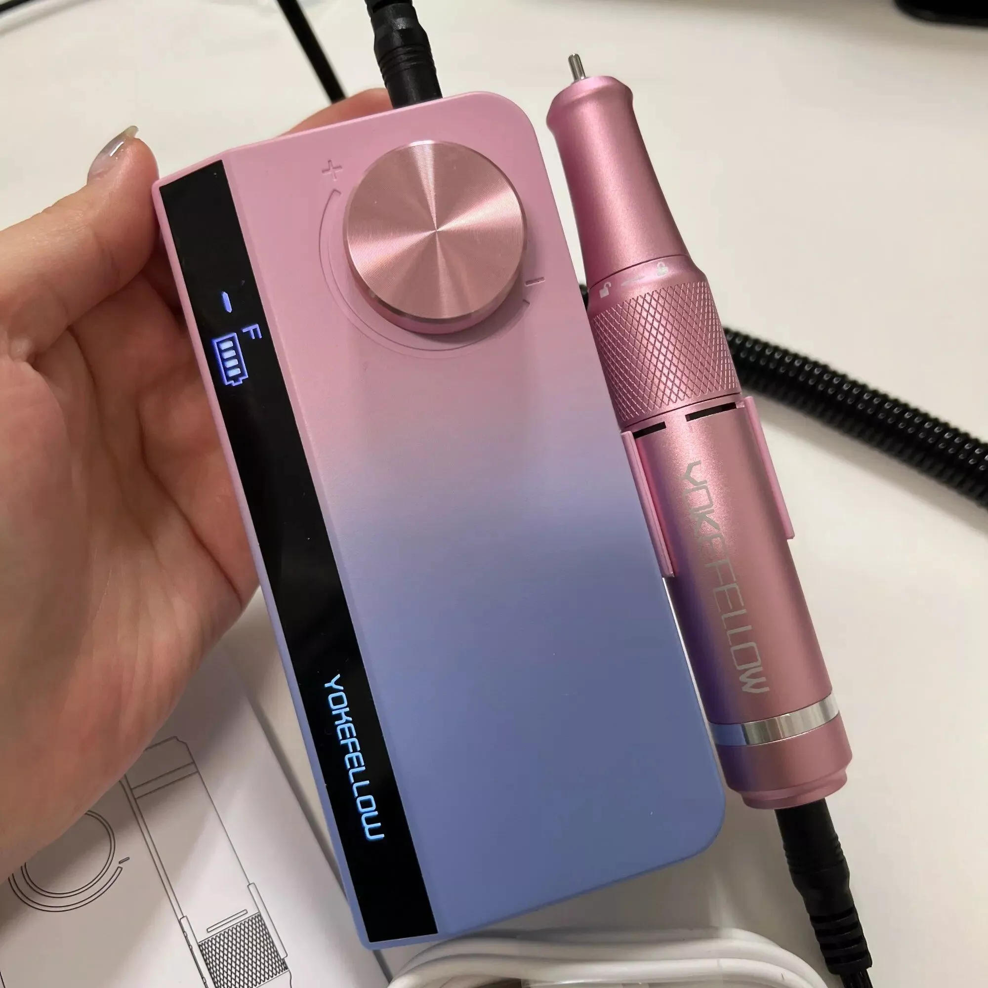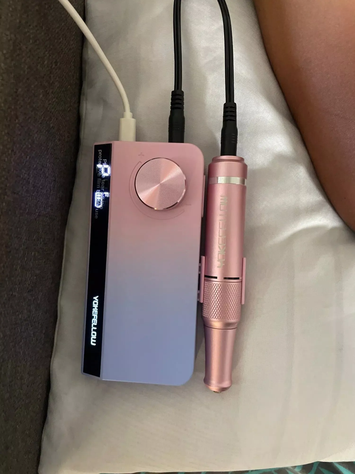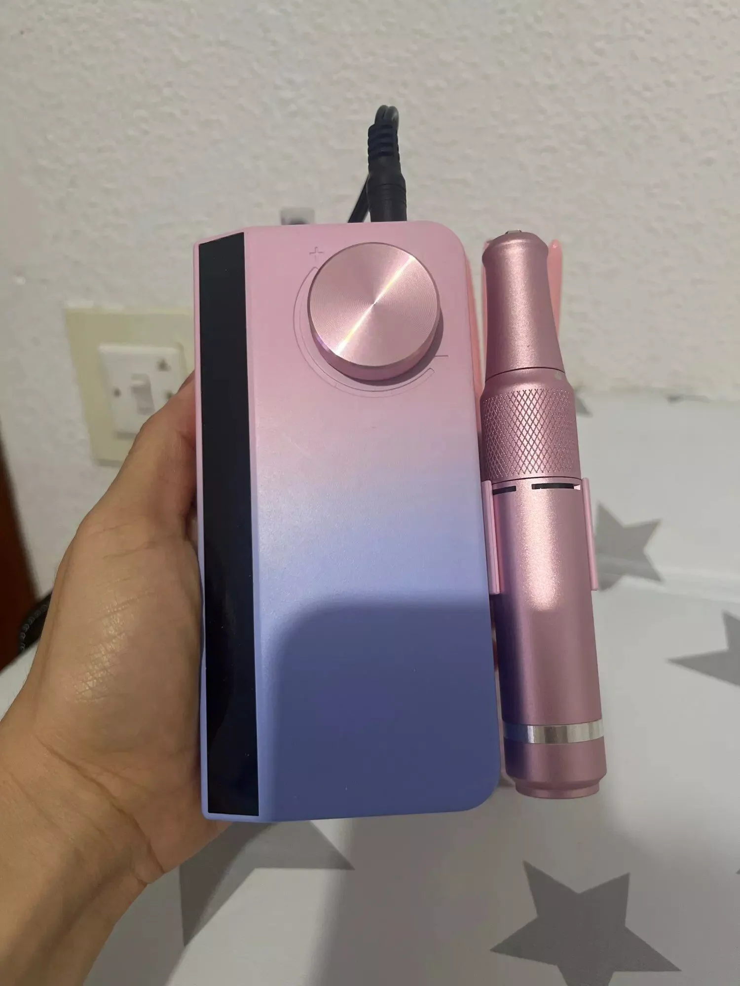 i recently purchased this rechargeable nail drill manicure machine and it has exceeded my expectations. the drill is powerful yet gentle on my nails, making it perfect for both beginners and professionals. the rechargeable feature is incredibly convenient, eliminating the hassle of cords and providing great portability. the battery life is impressive – it lasts through multiple manicure sessions before needing a recharge. the drill comes with a variety of attachments that are all high-quality and versatile, making it easy to shape, smooth, and buff my nails. the multiple speed settings allow for precise control, ensuring a professional-looking finish every time. the drill is also very quiet and doesn’t heat up, which makes it comfortable to use for extended periods. i’ve saved so much time and money doing my nails at home with this machine. it’s a fantastic investment for anyone who loves having beautifully manicured nails. highly recommend this product.