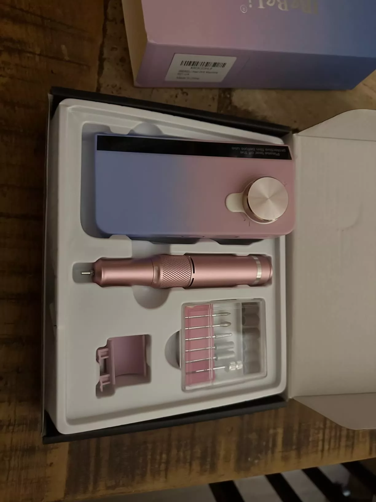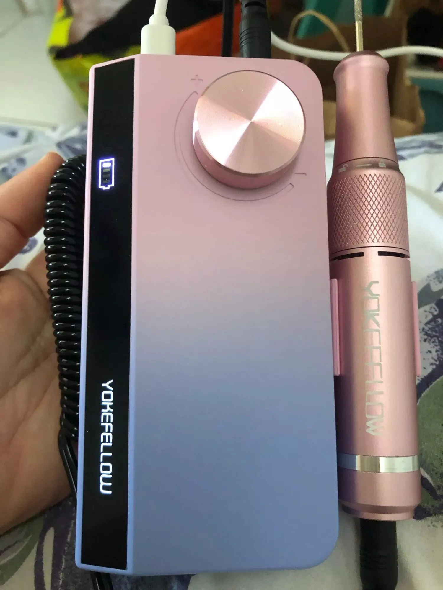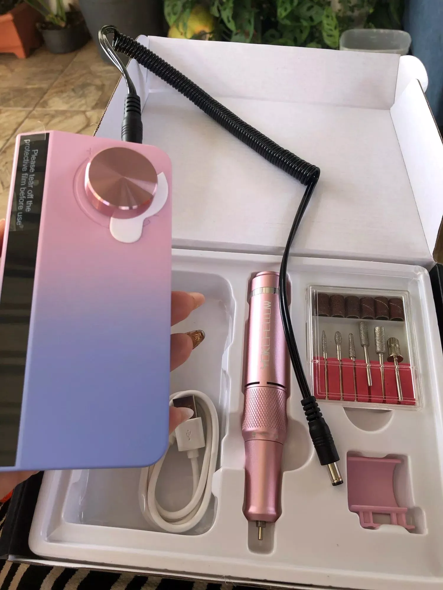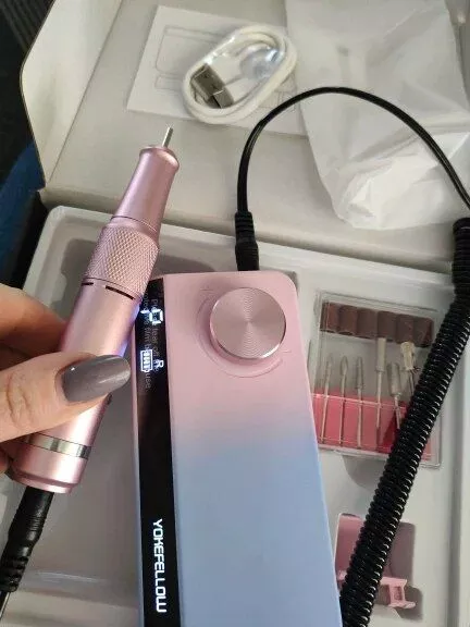 got this rechargeable nail drill machine and it’s wonderful. it’s easy to use, with intuitive controls and a variety of speed settings. the rechargeable battery is a major plus – it lasts a long time and makes the drill very portable. the attachments are versatile and perfect for all my manicure needs. the drill is quiet and doesn’t get hot, even with extended use. my nails look professionally done every time i use it. it’s a great investment for anyone who loves doing their nails at home. i’m very satisfied with this purchase and highly recommend it.