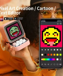 Step into the world of pixel art! This speaker is not just about sound; it’s a canvas for your creativity. Design your own pixel art, animations, and text messages with a vibrant LED display. Connect with a global community of pixel art enthusiasts through our free app, and discover a new realm of interactive fun.