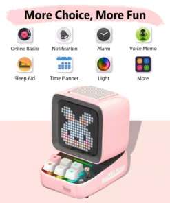 This speaker stands out with its unique combination of high-quality audio, creative pixel art capabilities, smart functionalities, and elegant design. It’s more than a speaker; it’s an experience.
