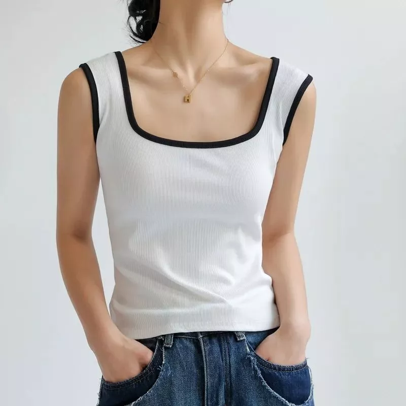Introducing our Ribbed Contrast Patchwork Tank Top, a perfect blend of style and comfort for your summer wardrobe. Designed to accentuate your silhouette while offering a touch of elegance, this top is more than just a basic – it’s a statement. Whether you’re soaking up the sun at the beach or enjoying a casual day out, this tank top is your go-to choice for a chic, effortless look.