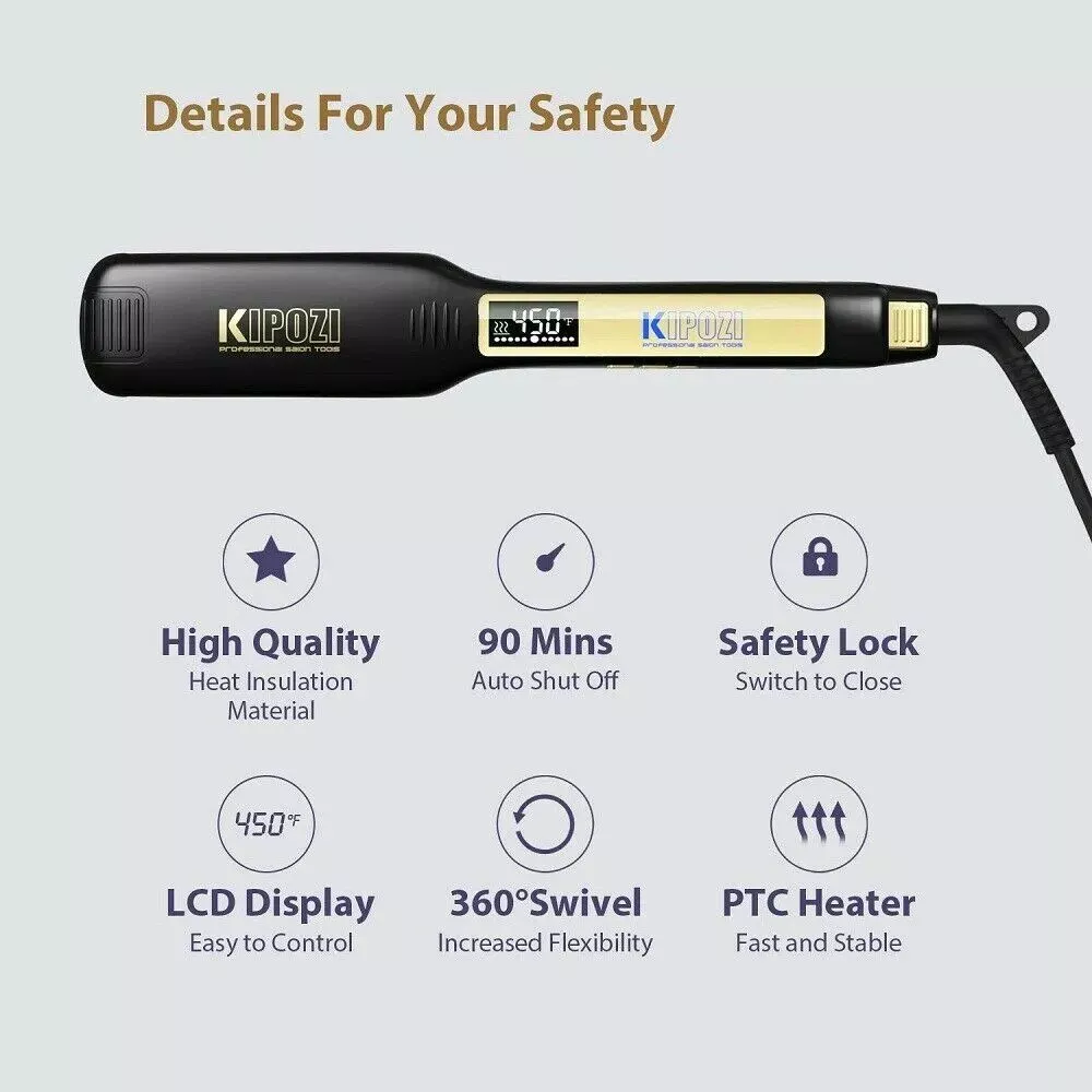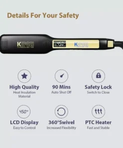 Our hair straightener stands out with its nano-titanium plates that provide a tighter press and more uniform heat distribution. This means you can achieve smoother, frizz-free, and shiny hair without excessive damage. The digital LCD display offers clear readings, making it easy to adjust to the perfect temperature. With settings specifically for fragile, damaged, and healthy hair, it’s ideal for everyone. The auto world voltage feature makes this flat iron a perfect travel companion, ensuring you look your best anywhere in the world.