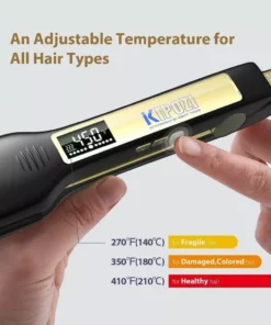 Specially designed for various hair types, our straightener offers customized temperature settings. Choose 270F for fragile hair, 350F for damaged or colored hair, and 410F for healthy hair. It’s the ideal tool for achieving professional results at home, whether you’re straightening or curling.