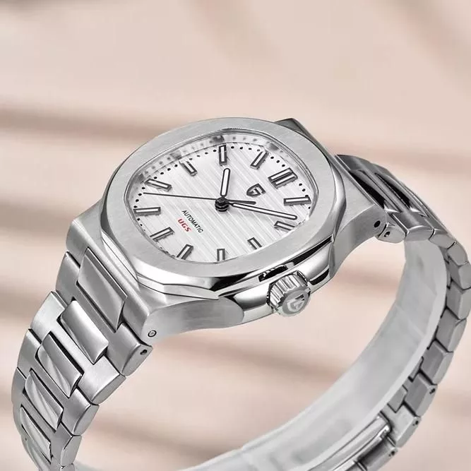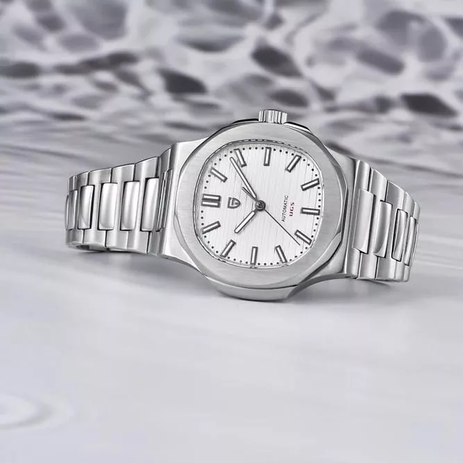 Powered by an automatic self-winding movement, this watch is a marvel of mechanical precision. Its luminous hands ensure visibility in low light conditions, while the shock-resistant design offers peace of mind during active use. Whether you’re swimming or caught in the rain, its impressive 10Bar water resistance depth keeps it functioning flawlessly.