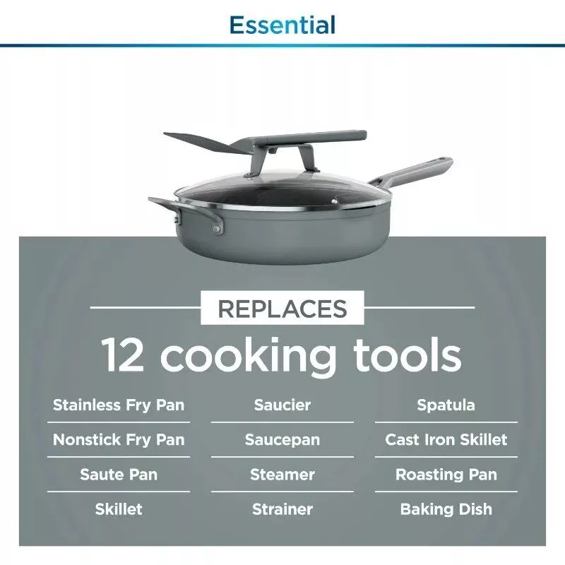 Introducing the revolutionary Sea Salt Grey NeverStick PossiblePan, a culinary game-changer. This 4-quart marvel isn’t just a pan; it’s a one-stop solution for all your cooking needs, ingeniously replacing 12 kitchen tools. Whether you’re sautéing, baking, or roasting, this PossiblePan is designed to handle it all with ease.