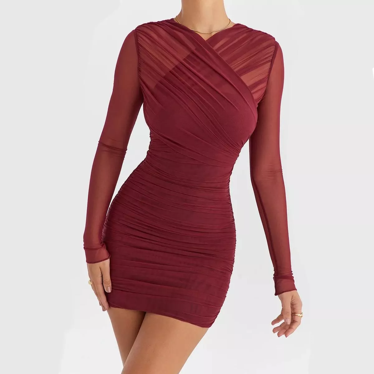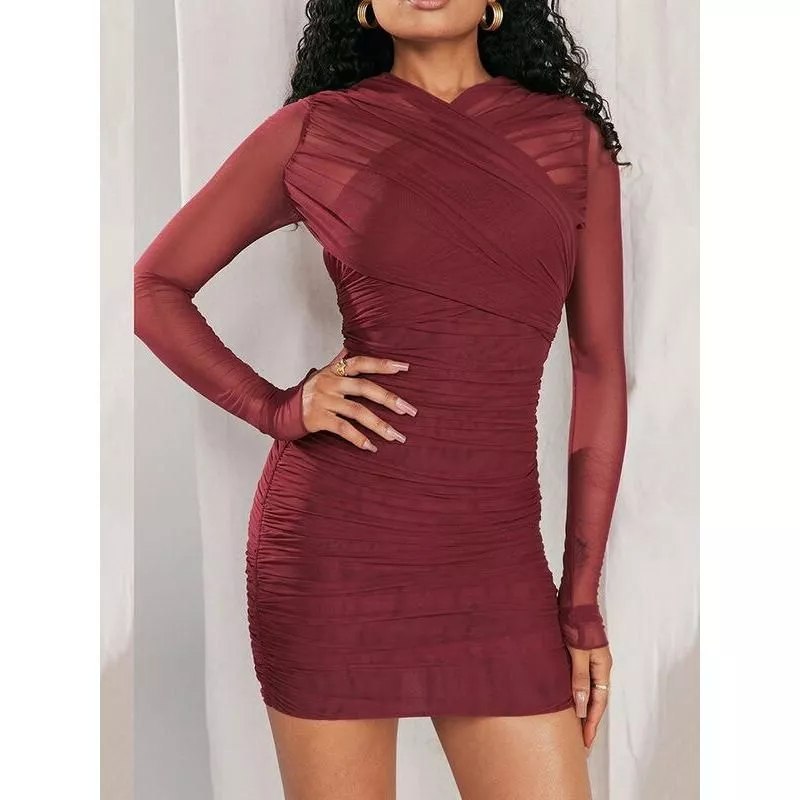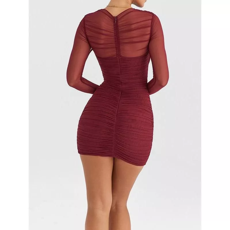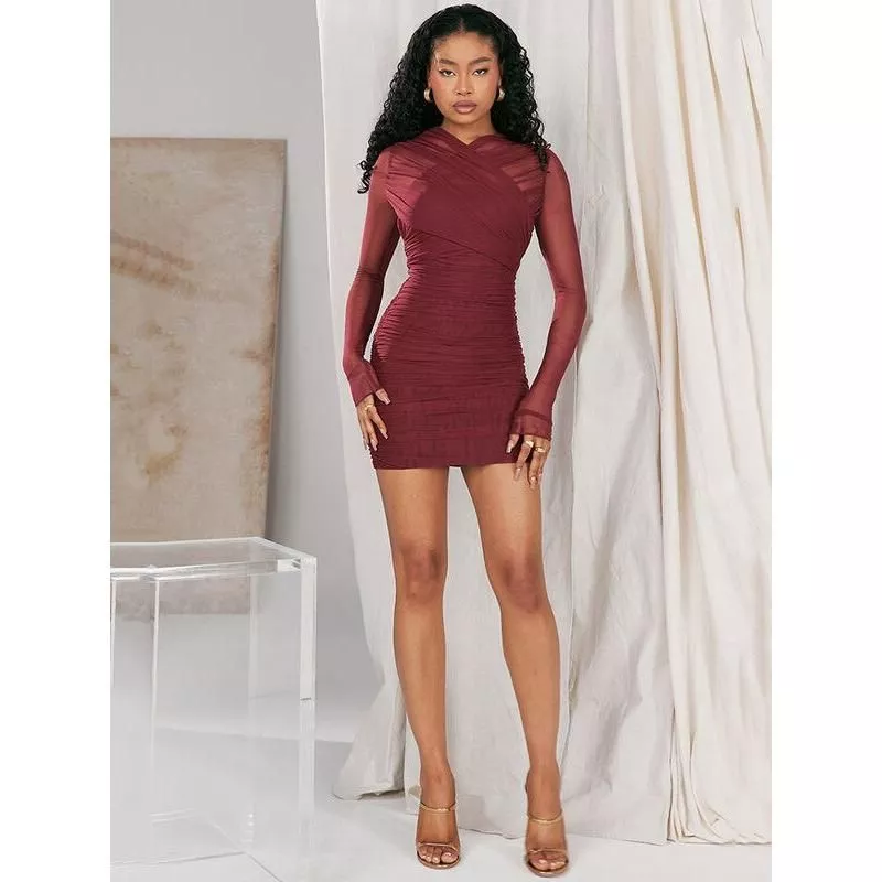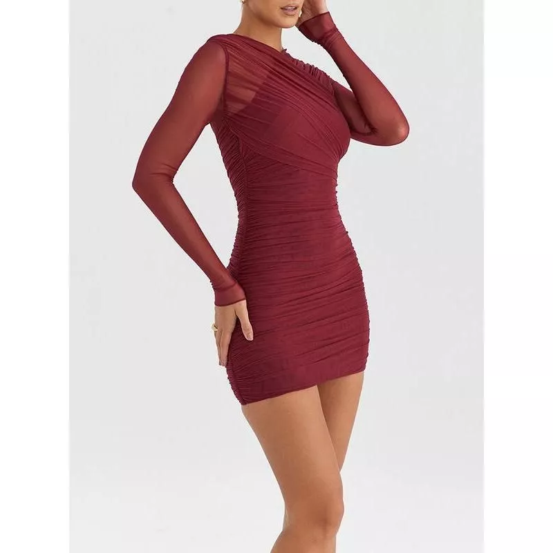 This dress is your go-to choice for a range of occasions, from a night out with friends to an upscale party. Its versatility makes it suitable for autumn and winter events, providing both warmth and style. The sheer long sleeves add a touch of elegance, making it ideal for evening events or club nights.