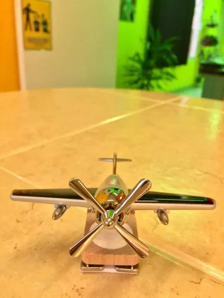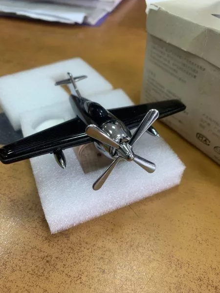 The airplane is both beautiful and entertaining. It’s a unique product, and I’m torn between putting it in my car or on my desk. I appreciate the seller’s excellent service. It arrived quickly, and I’m so satisfied that I plan to buy more for Christmas gifts