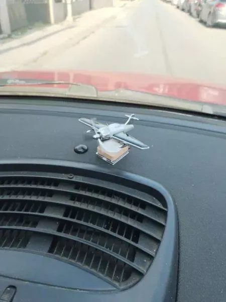 I’m so pleased with this airplane air freshener. It was a gift from my daughter, and it’s quickly become a favorite in my car. The propeller’s movement in the sun is fascinating, and the ability to use various scents makes it even better