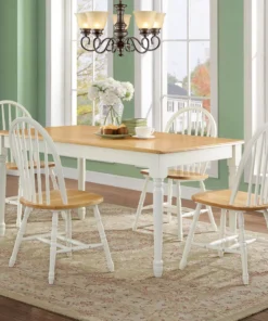Designed for versatility, these standard height chairs can elevate the charm of your dining room, kitchen, or breakfast nook. The stained oak and painted finishes perfectly match the Better Homes & Gardens Autumn Lane Dining Table, creating a cohesive and inviting dining space. The turned-wood legs and back not only add a touch of style but also contribute to the chairs’ sturdy construction, ensuring durability for years to come.