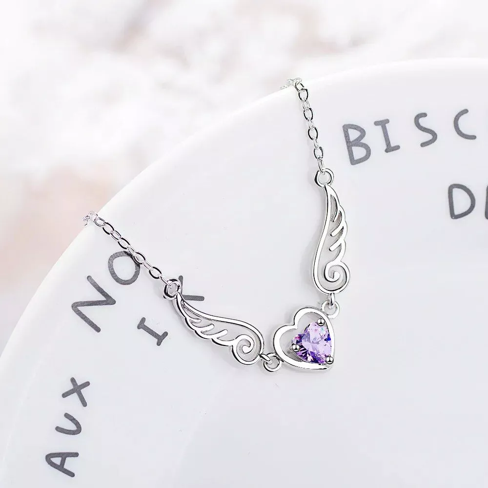 Introducing our exquisite Angel Wing Pendant Necklace, a symbol of protection, purity, and love, designed to add a touch of divine grace to your everyday ensemble. Crafted from high-quality 925 Sterling Silver and adorned with a captivating purple zircon stone, this necklace is not just an accessory but a testament to timeless elegance. Perfect for those who appreciate the fine blend of classic style and meaningful symbolism.