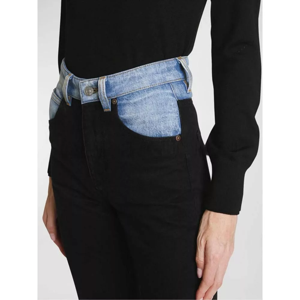 Made from a perfect blend of cotton and polyester, these jeans promise both comfort and durability. The non-stretch fabric ensures a snug fit while maintaining the shape of the jeans. With a medium wash and regular thickness, they are ideal for any season and setting. The unique patchwork design and contrast color detailing set these jeans apart, adding an edge to your look.