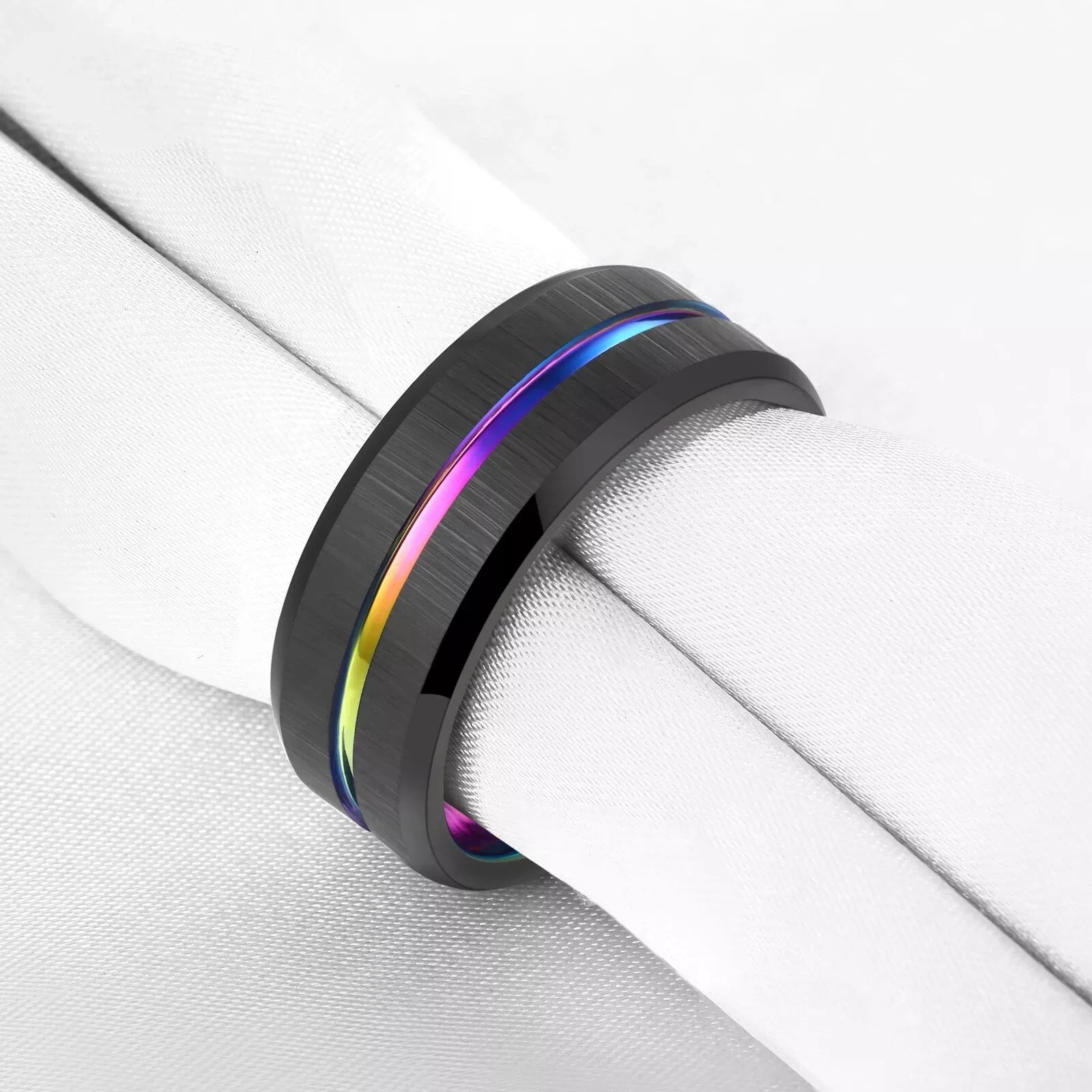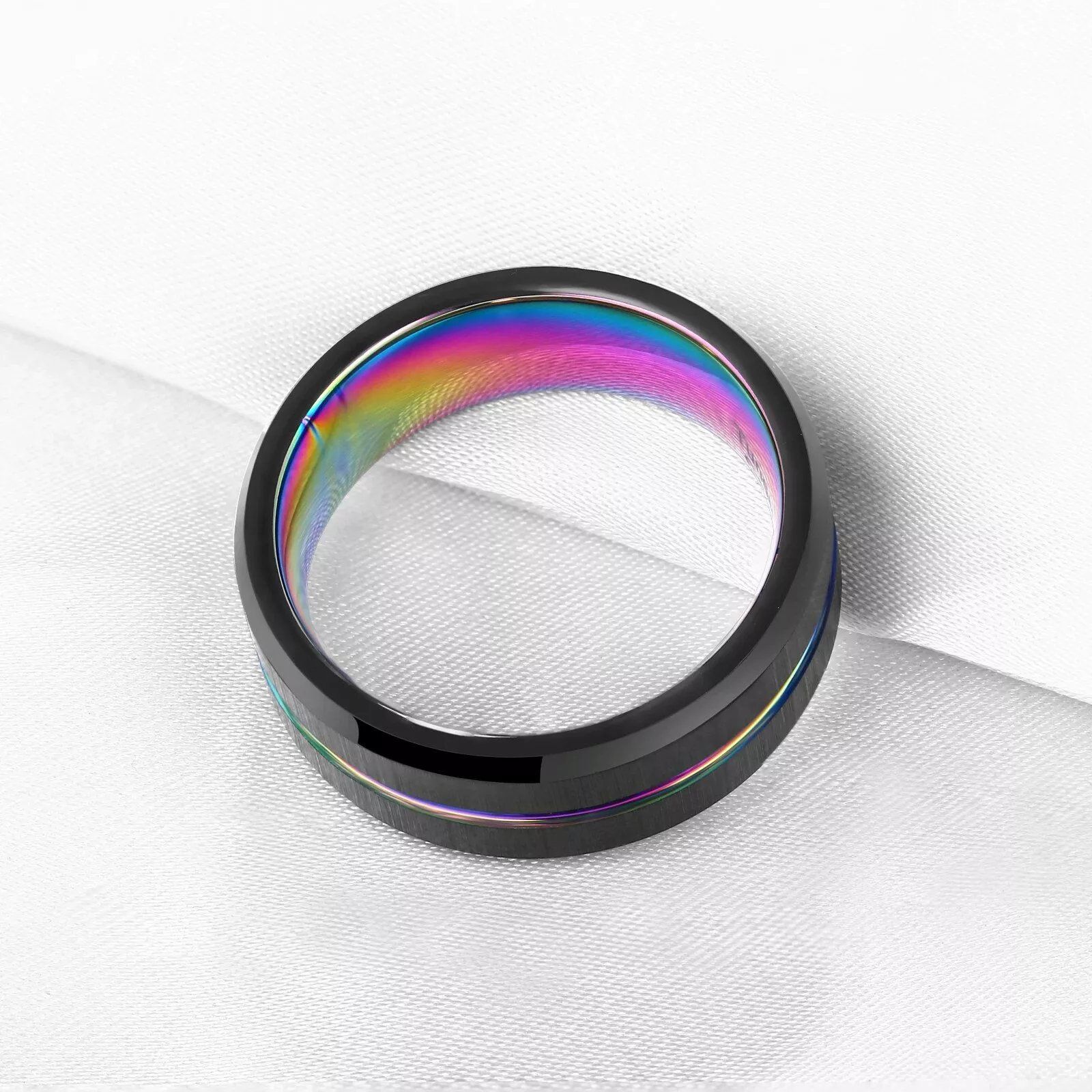 - Unique Design: The combination of classic black with a rainbow groove makes this ring a standout piece, reflecting your unique taste.