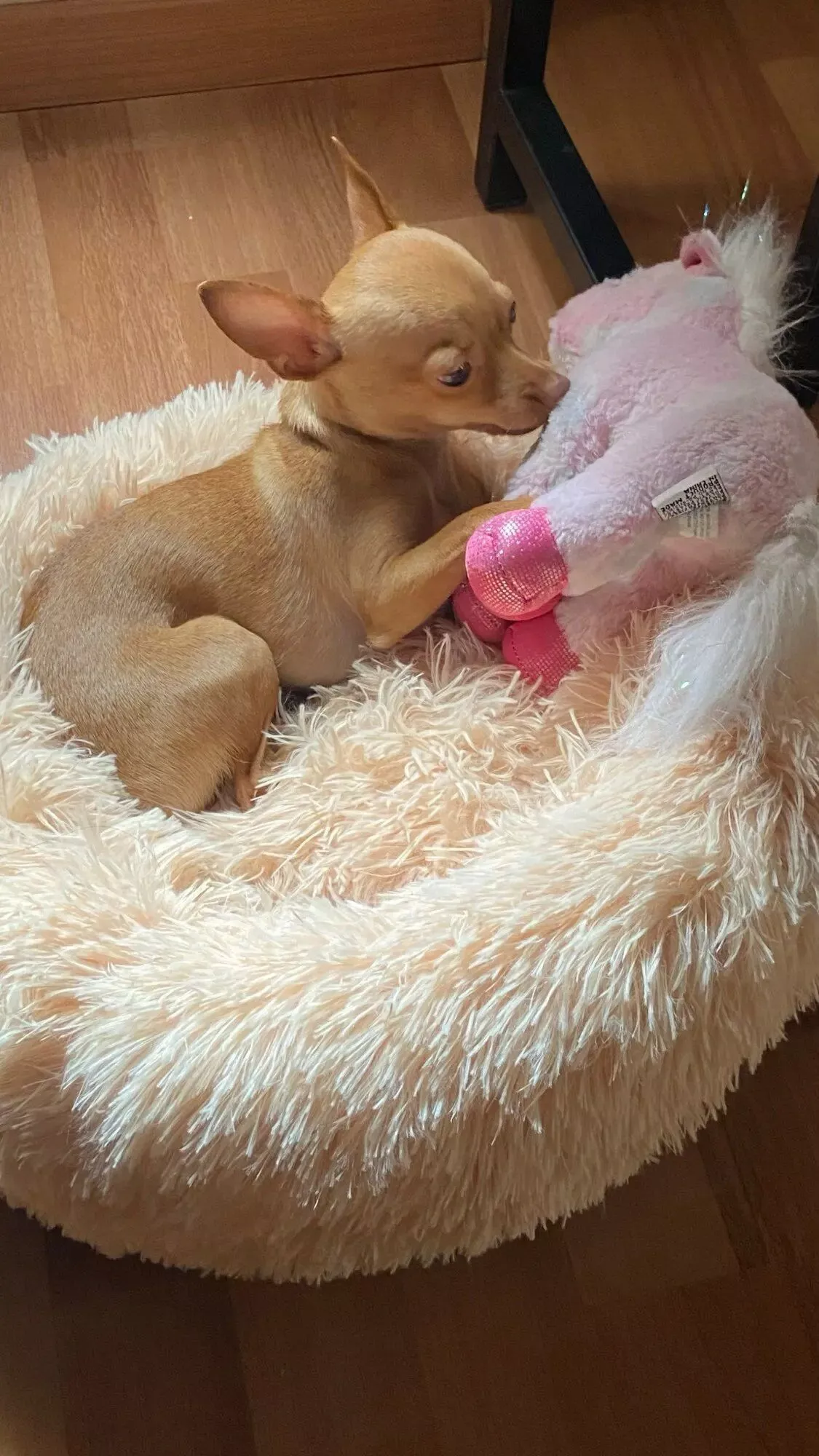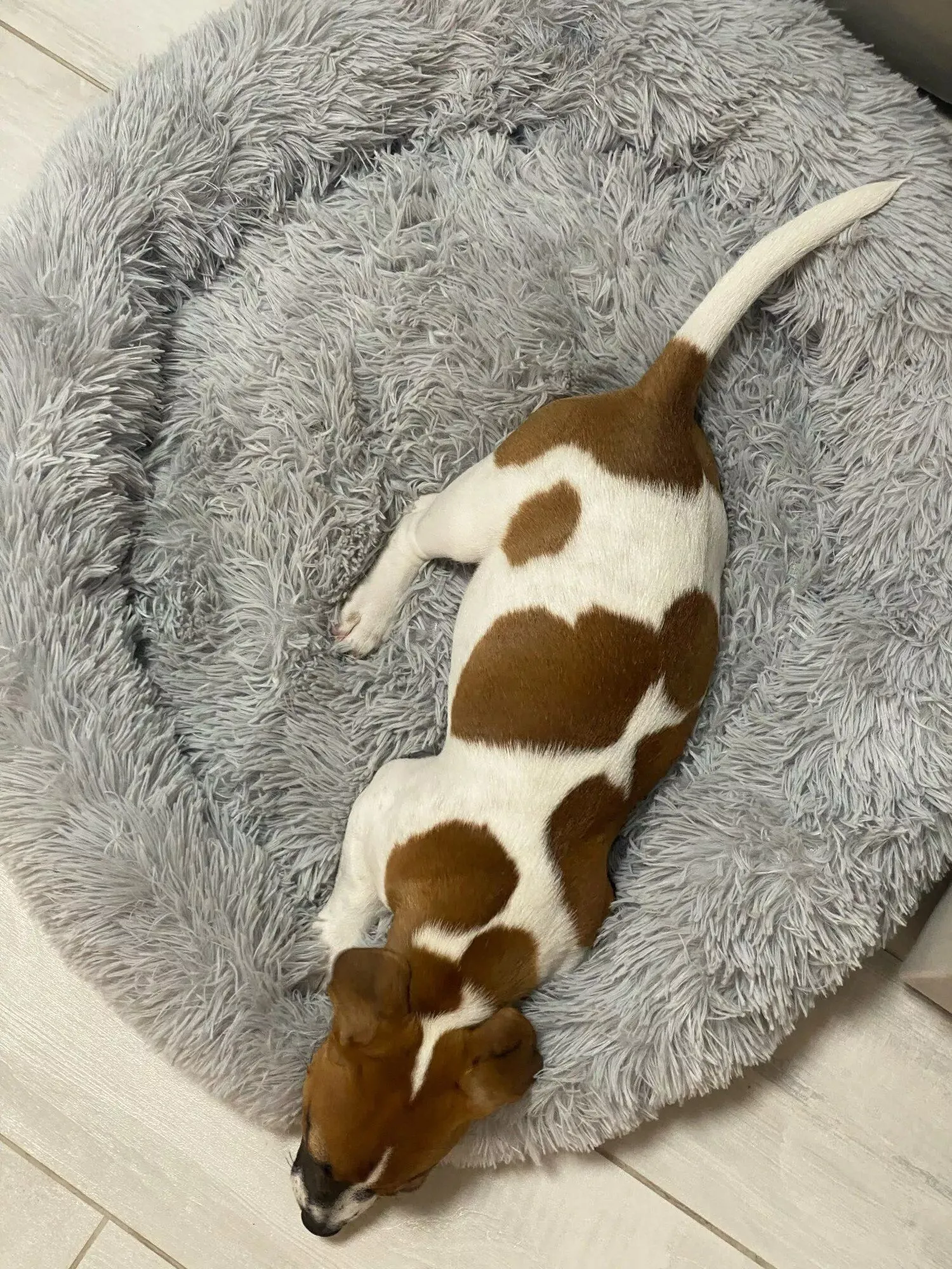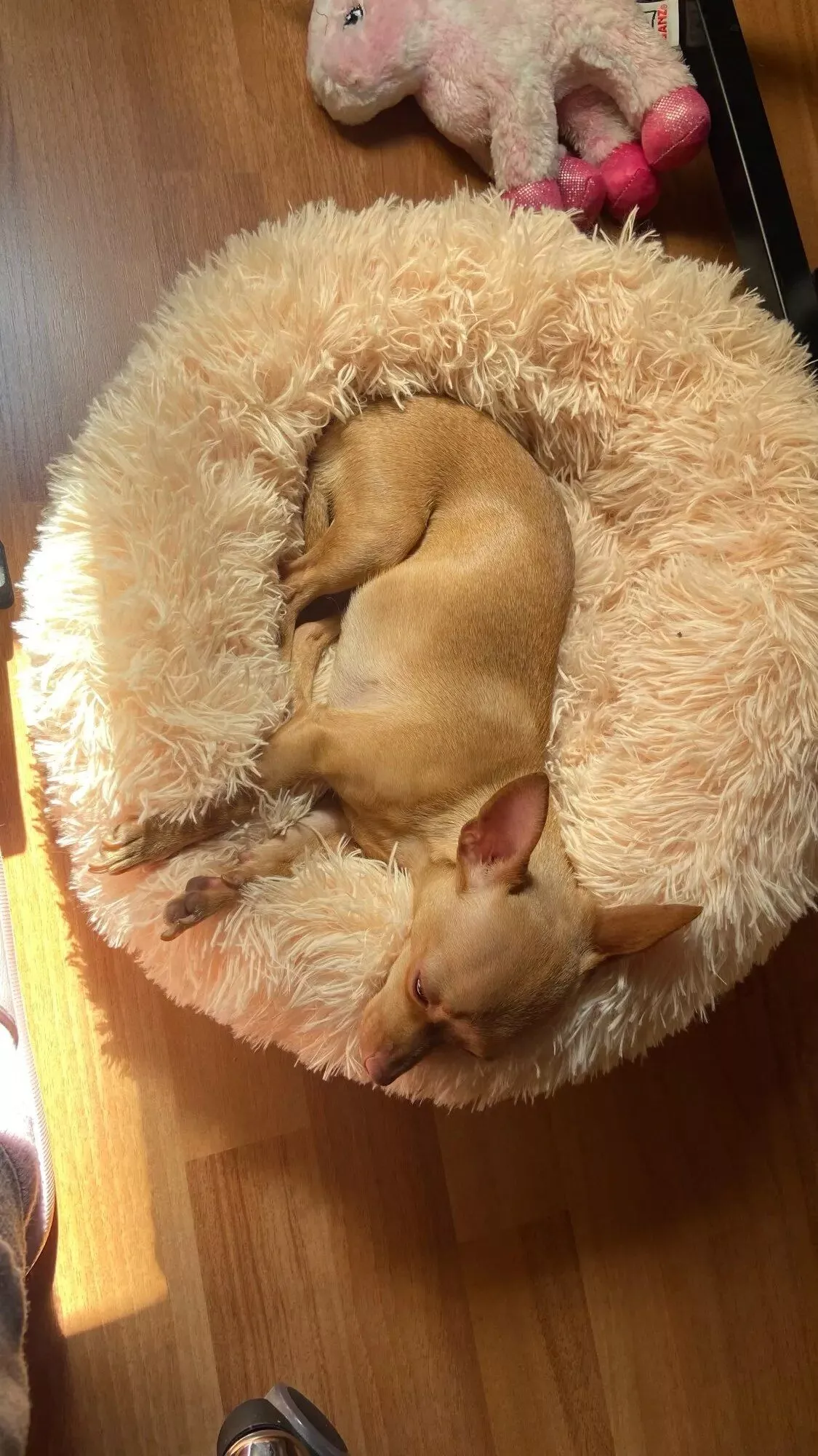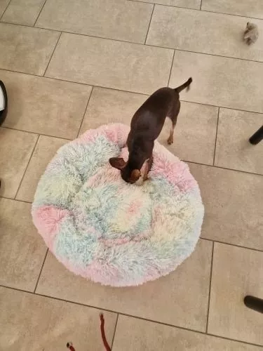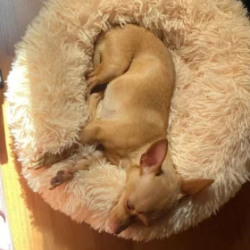 My little rat terrier had taken over a tiny cat bed as her own, but she had outgrown it. I felt bad for her, so I found this one, and it looked so comfy. She loves it so much that she uses it all the time as her “nest.” I’m so happy I found this little bed for her.