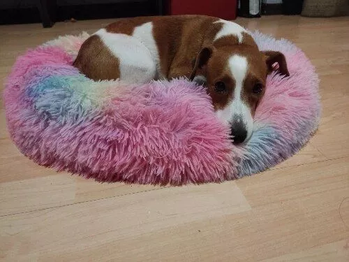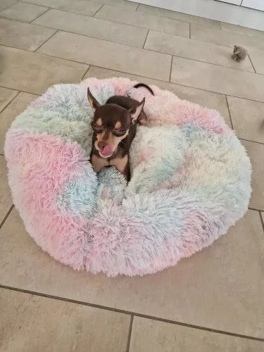 I purchased a smaller version about a year ago, and my dog used it but always seemed to end up sleeping on the floor and tucking her head into it like a pillow. Finally, I decided to buy the larger one, and boy does she love it! It’s incredibly soft, with high edges that allow her to snuggle in, and it seems to have a calming effect as well. I highly recommend it.