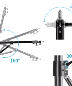 This boom arm stands out with its ability to rotate both horizontally and vertically, providing unparalleled flexibility in positioning your equipment. Whether you’re capturing stunning portraits, dynamic action shots, or creating professional-grade videos, this boom arm ensures your lighting and camera are exactly where you need them. The robust plastic construction offers reliability without the burden of heavy metal alternatives.