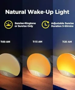Perfect for anyone looking to improve their sleep quality and wake-up routine. Whether you’re a heavy sleeper needing a loud alarm to wake up, someone who enjoys falling asleep to calming sounds, or you’re looking for a gentle wake-up call to start your day on the right foot, our Wake-Up Light & Sound Machine Alarm Clock is designed for you. Its smart device compatibility also makes it a great addition to any modern, connected home.