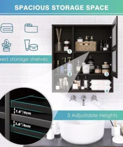 This cabinet is more than just a storage unit; it’s a statement of style and functionality. Its minimalist modern design seamlessly blends with any decor, providing a timeless look that elevates your bathroom. The adjustable shelves cater to your unique storage needs, ensuring everything you need is organized and within reach. Whether it’s for daily grooming routines or storing essentials, this cabinet is best used where space is at a premium and style is appreciated.