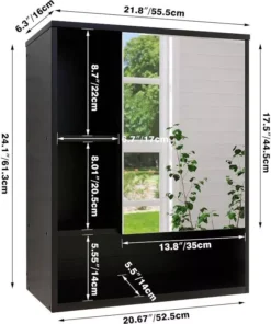 Introducing our space-saving, multifunctional bathroom mirror cabinet, designed to enhance your bathroom’s aesthetic while providing an ingenious storage solution. Perfect for small spaces, this wall-mounted cabinet combines a sleek, high-definition mirror with ample storage, making it an essential addition to your home. Say goodbye to cluttered countertops and hello to organized elegance.