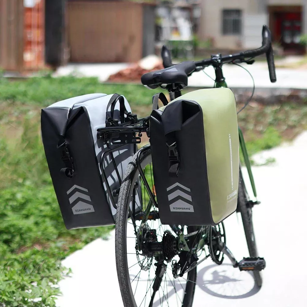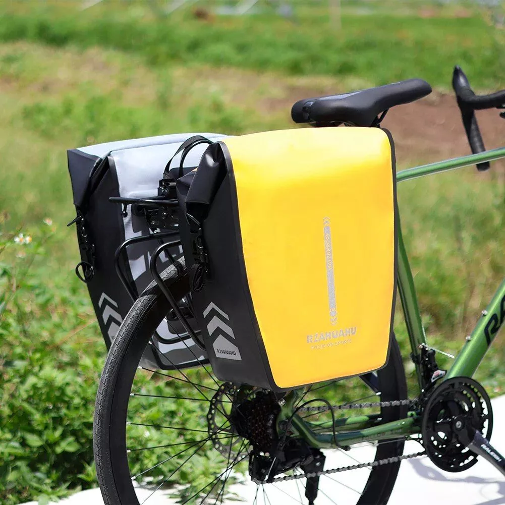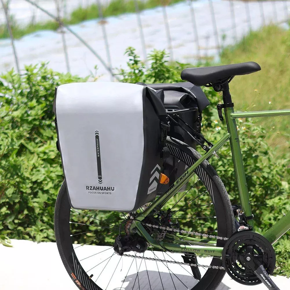 Our bike rack bag stands out with its multifunctional design and exceptional durability. The waterproof material guarantees the safety of your belongings, rain or shine. Its spacious 18L capacity lets you carry all your essentials effortlessly. The adjustable buckles ensure a snug fit on any bike, while the portable handle turns it into a handy carry-on when you’re off the bike. Safety is paramount, and the reflective detailing on the bag increases your visibility during night rides.
