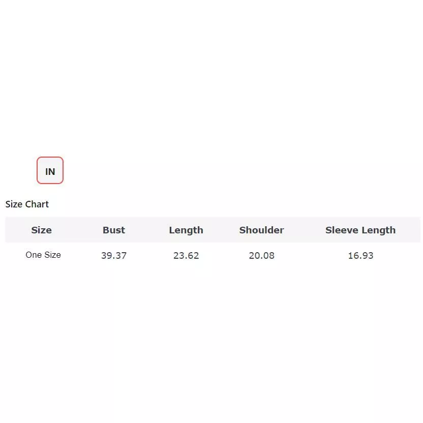- One Size Fits Most: Generously sized (Bust: 100cm, Sleeve: 43cm, Shoulder: 51cm, Length: 60cm) to fit a range of body types comfortably.